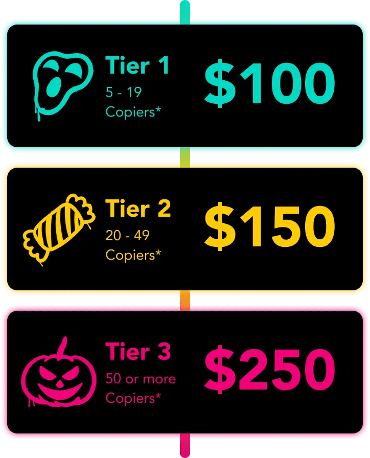 Comience ahoraAtrae Copiers y sube por los niveles de recompensa. Gana entre $100 y $500 siguiendo estos simples requisitos.
