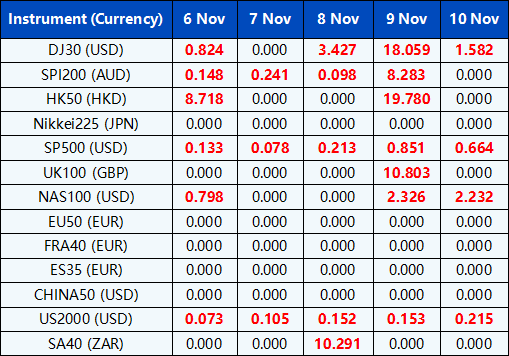 Please be advised that the dividends of the following index CFDs will be adjusted by upcoming ex-dividend dates. The comment for trading index CFDs will be in the following format “Div&<Product Name>&<Net Volume>” which show in the balance after the close of the day before the dividend payment date.