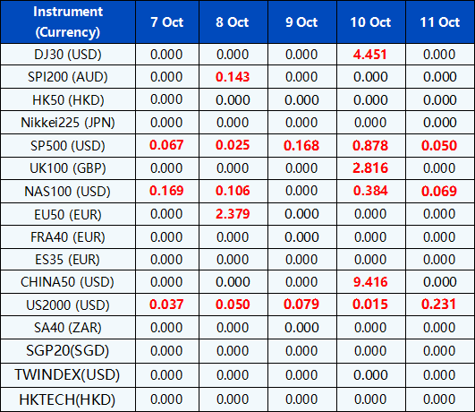 Please note the above data are subject to changes. Please refer to MT4/MT5 for details.
