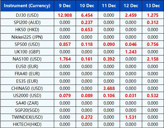 Please be advised that the dividends of the following index CFDs will be adjusted by upcoming ex-dividend dates. The comment for trading index CFDs will be in the following format “Div&<Product Name>&<Net Volume>” which show in the balance after the close of the day before the dividend payment date.
